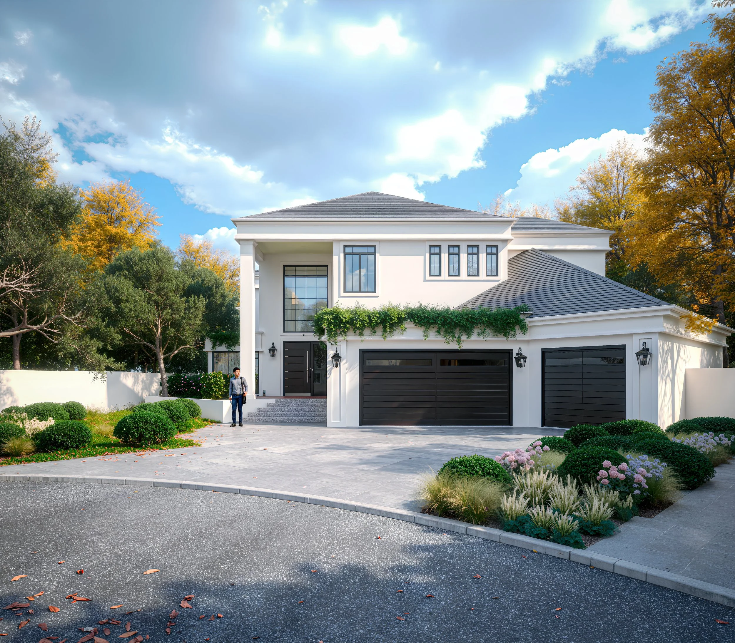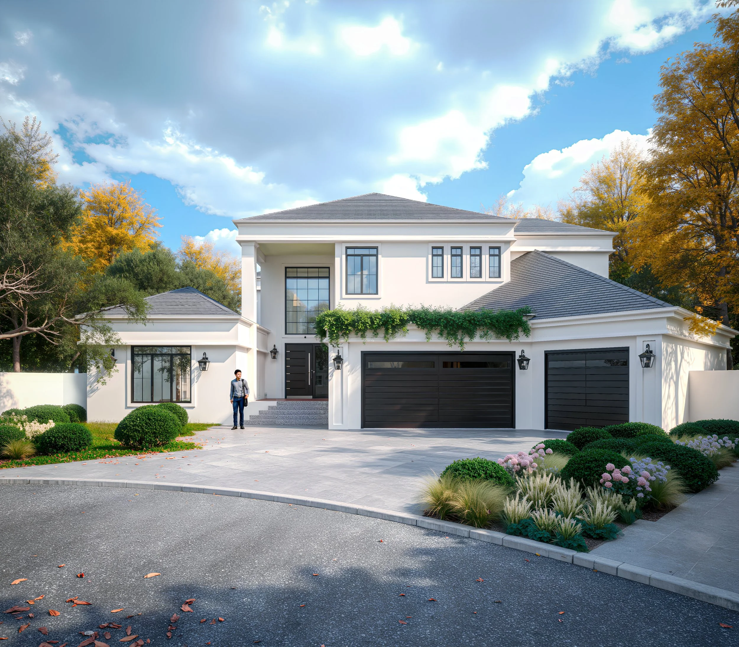 The first rendering phase captured the original layout with updated finishes: redesigned parapet planting, refined window proportions, and a cleaner, more contemporary façade treatment. The second version proposed a lateral room extension on the left side, integrating seamlessly into the visual language of the existing structure. To elevate realism and coherence, AI post-processing was employed as a final step, tying textures, lighting, and context into a polished final output.
